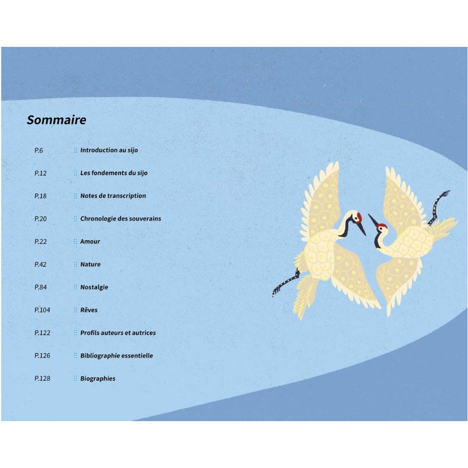 Ce livre vous plonge dans l'univers poétique coréen du sijo, une forme de poésie traditionnelle qui se distingue par sa structure unique : composée de trois vers avec une cadence rythmée qui évoque le passage du temps, typiquement coréen.
