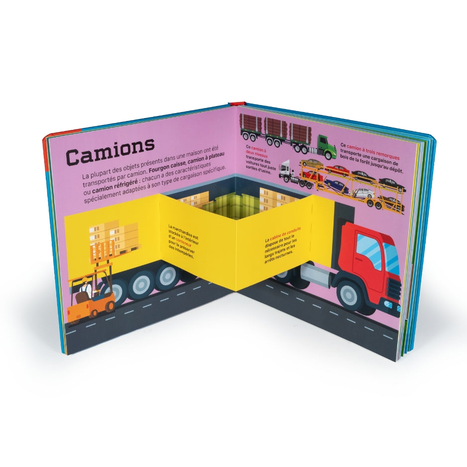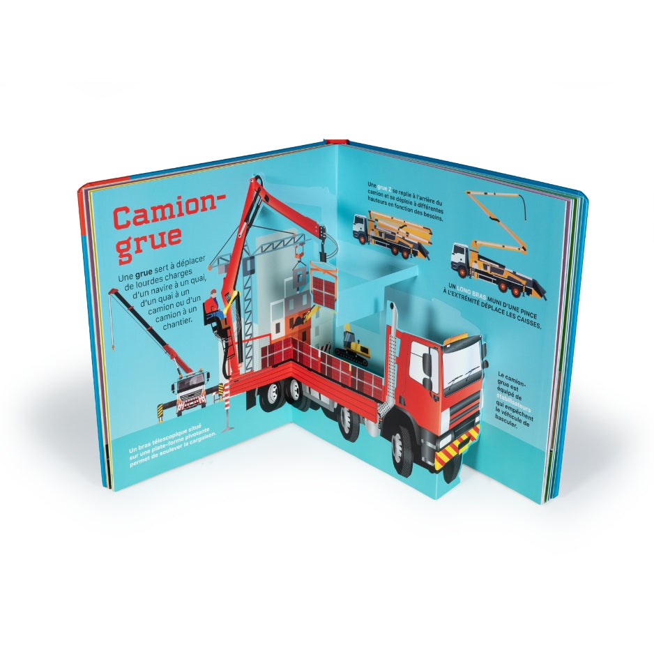 - 8 pop-up en 3D qui font surgir les camions et leurs missions à chaque page