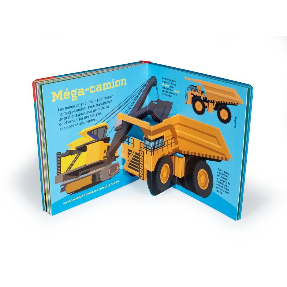 Les camions-grues, les fascinants camions de pompiers, les irrésistibles Monster trucks et bien d’autres prennent vie grâce à 8 spectaculaires pop-up. À chaque page, les enfants découvrent les caractéristiques et le fonctionnement de ces géants de la route à travers des illustrations colorées et animées.
