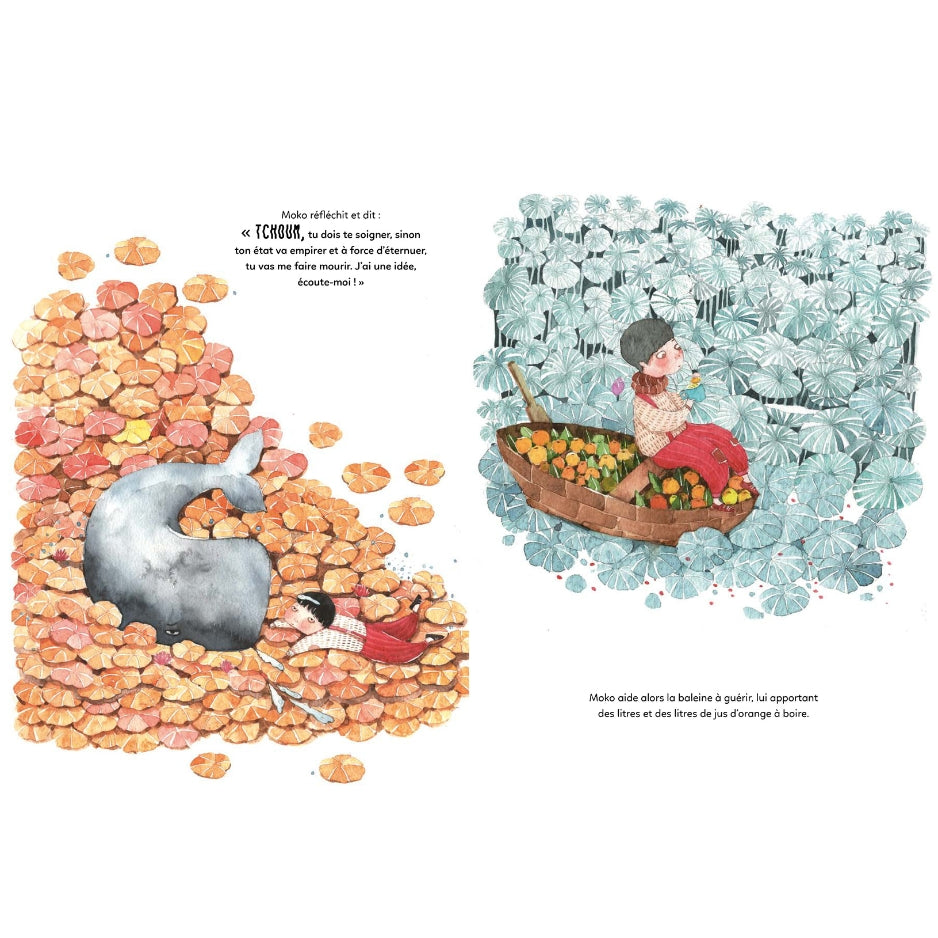 À travers humour et tendresse, cette histoire aborde la solidarité, l’écoute et la beauté des liens inattendus. Un album jeunesse captivant qui raconte l'histoire d'un jeune pêcheur qui se lie d'amitié avec une baleine. Chaque éternuement de la baleine provoque une vague gigantesque, perturbant la mer calme. Le protagoniste, avec ingéniosité et compassion, tente de soigner son amie marine, donnant naissance à une amitié improbable mais sincère. Ensemble, ils vivent des aventures marines !